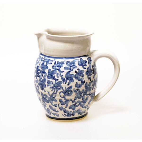 Handdrejad tillbringare/kanna. Dekor – blått handmålat mönster.