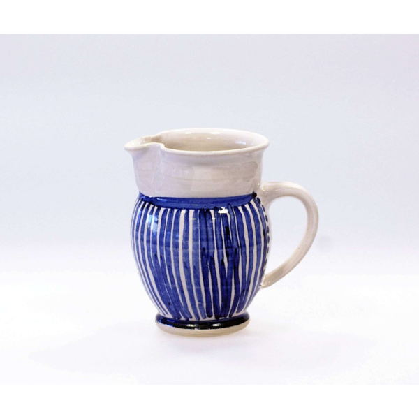 Handdrejad liten kanna. Dekor – blått handmålat mönster.
