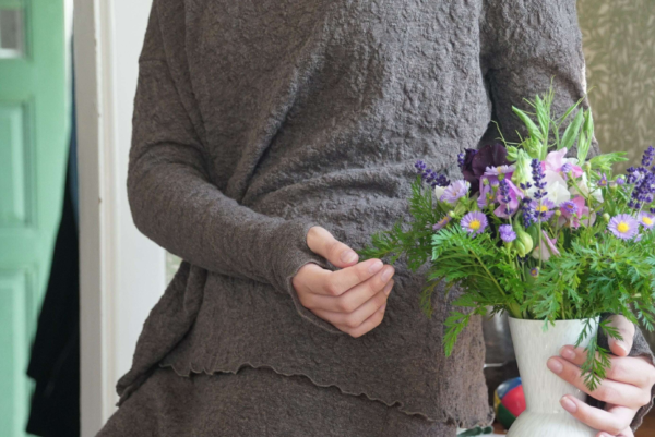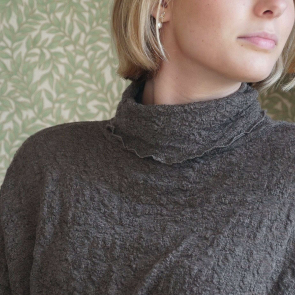 Etiketter: 100%ull, bybasics, damkläder, formcraft, grå, hållbar, hållbardesign, hållbarformgivning, höghals, högkrage, långaärmar, ljusgrå, Töreboda, tumhål