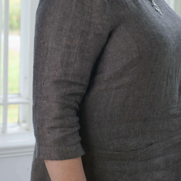 Mjuk klänning i 95 % linne och 5 % ull med fickor
