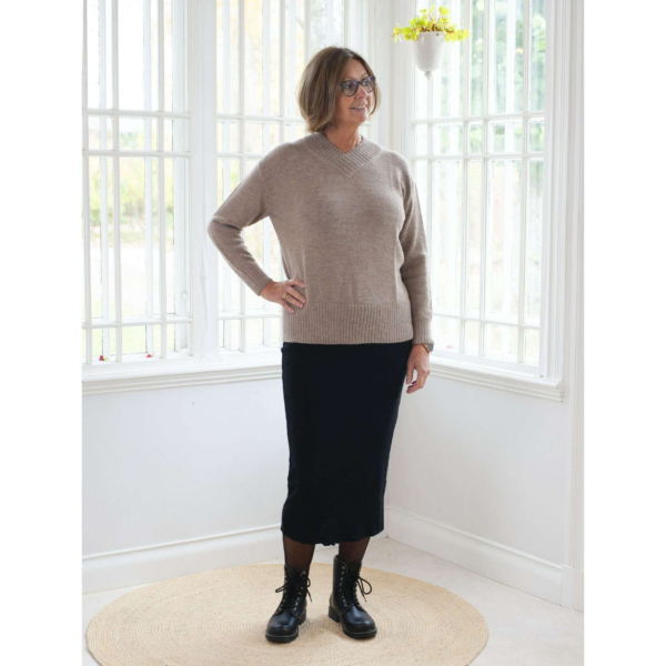 Bli först med att recensera ”Stickad v-ringad ulltröja, 100 % alpackaull, beige” Avbryt svar